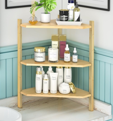 3層コーナー棚竹製シャワーコーナー棚フリースタンディング