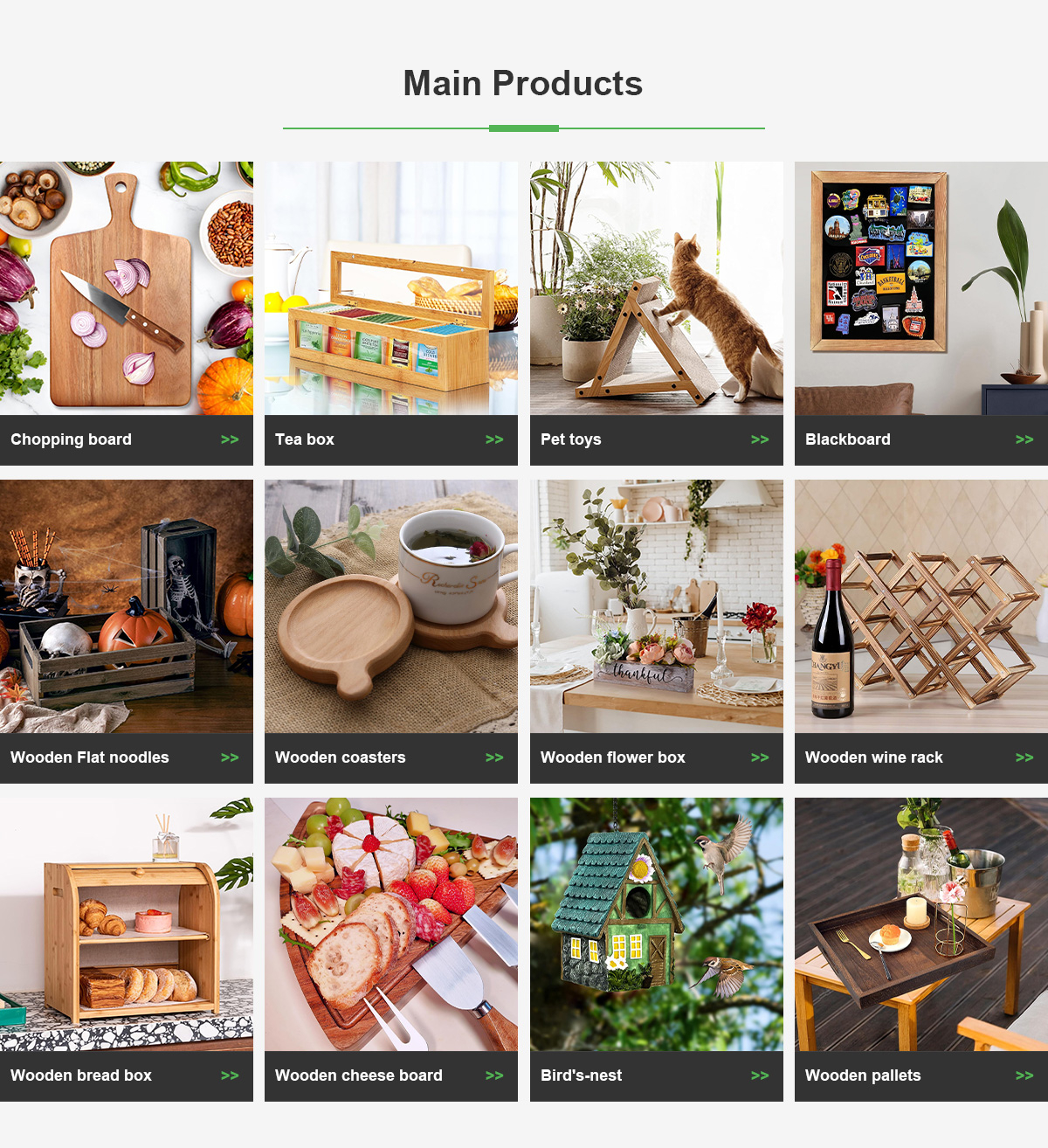 Belangrijkste producten:Houten doos, houten krat, houten dienblad, houten plank, houten krijtbord